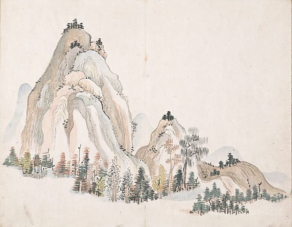 Ti offriamo una riproduzione artigianale su tela dell'opera famosa 'Untitled (montagne)' di Ike no Taiga, dal Museo delle Riproduzioni.