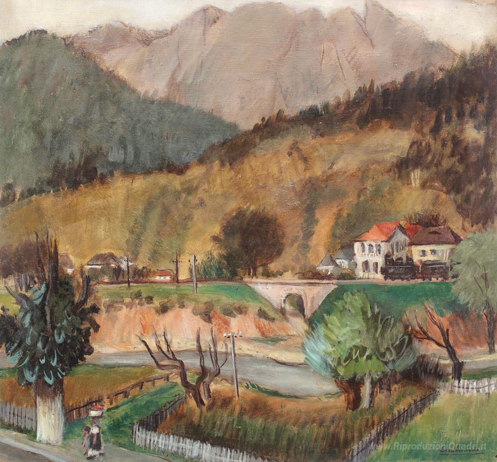 Ti offriamo una riproduzione artigianale su tela dell'opera famosa 'Valle Prahova Paesaggio' di Micaela Eleutheriade, dal Museo delle Riproduzioni.