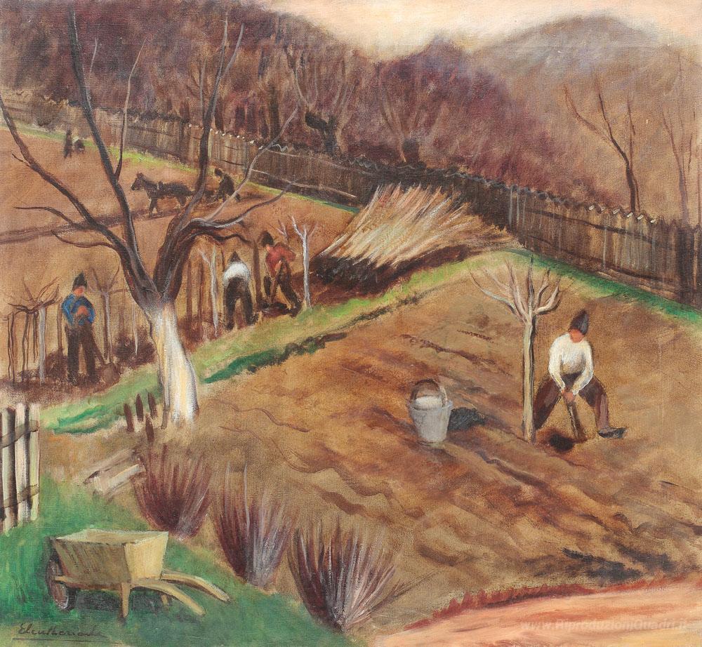 Ti offriamo una riproduzione artigianale su tela dell'opera famosa 'Valle Prahova Paesaggio' di Micaela Eleutheriade, dal Museo delle Riproduzioni.