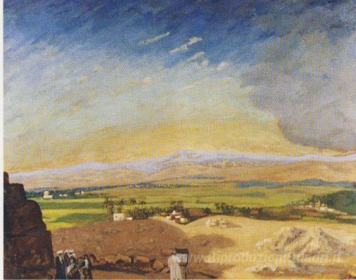 Ti offriamo una riproduzione artigianale su tela dell'opera famosa 'Veduta del Cairo Piramidi' di Winston Churchill, dal Museo delle Riproduzioni.