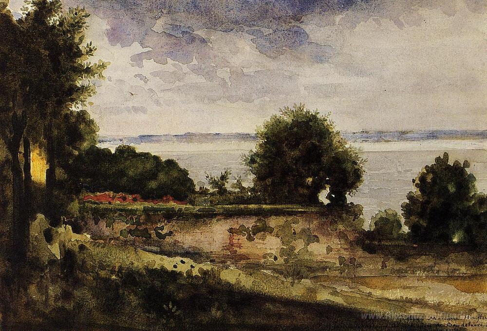 Ti offriamo una riproduzione artigianale su tela dell'opera famosa 'Veduta del giardino di Madame Aupick, Madre di Baudelaire' di Gustave Moreau, dal Museo delle Riproduzioni.