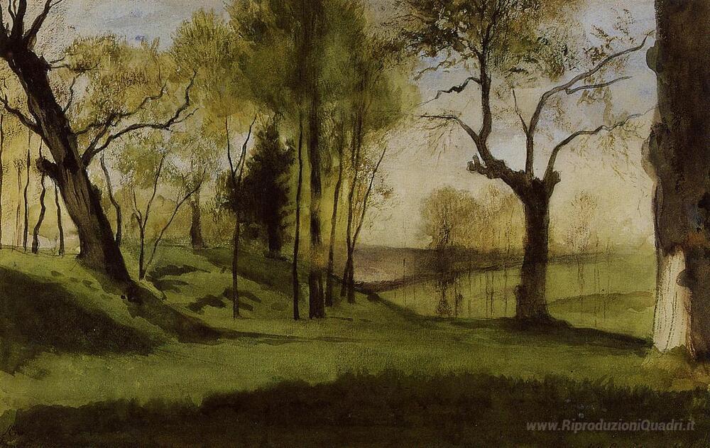 Ti offriamo una riproduzione artigianale su tela dell'opera famosa 'Veduta della Villa Borthese' di Gustave Moreau, dal Museo delle Riproduzioni.