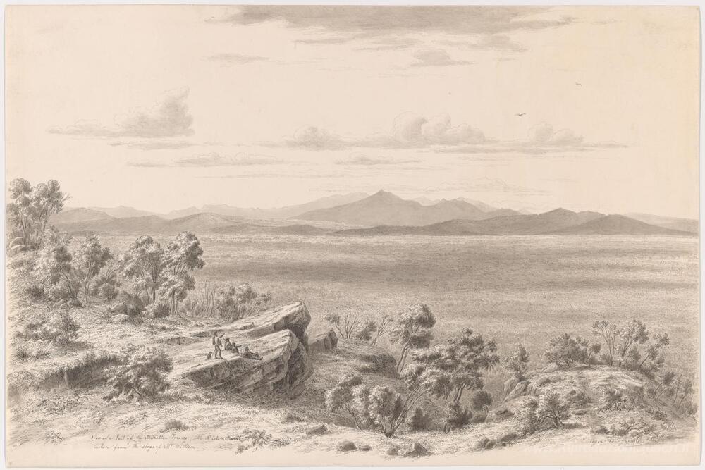 Ti offriamo una riproduzione artigianale su tela dell'opera famosa 'Veduta di una parte dei Pirenei australiani, poco Mt Cole e Arar' di Eugene von Guerard, dal Museo delle Riproduzioni.