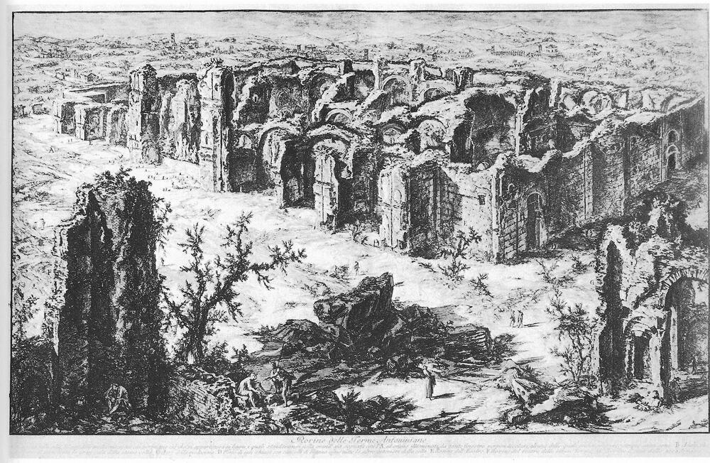 Ti offriamo una riproduzione artigianale su tela dell'opera famosa 'Vedute di Roma' di Giovanni Battista Piranesi, dal Museo delle Riproduzioni.