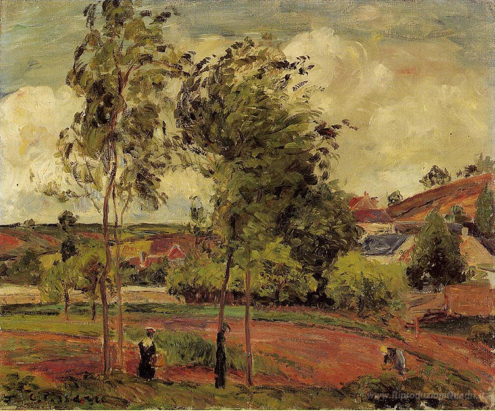 Ti offriamo una riproduzione artigianale su tela dell'opera famosa 'Venti forti, Pontoise' di Camille Pissarro, dal Museo delle Riproduzioni.
