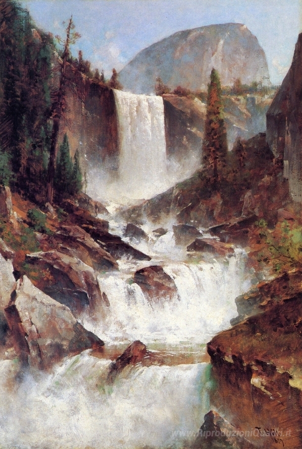 Ti offriamo una riproduzione artigianale su tela dell'opera famosa 'Vernal Falls, Yosemite' di Thomas Hill, dal Museo delle Riproduzioni.