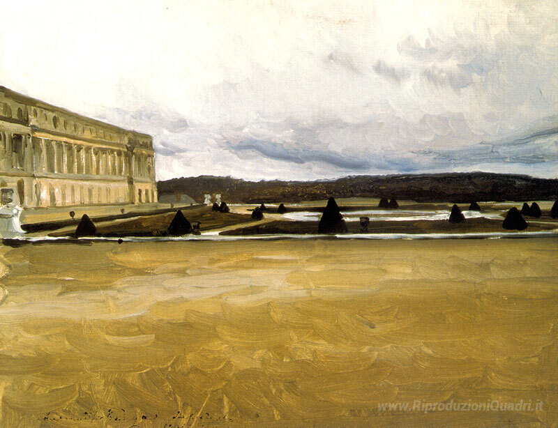 Ti offriamo una riproduzione artigianale su tela dell'opera famosa 'Versailles' di Alexandre Benois, dal Museo delle Riproduzioni.