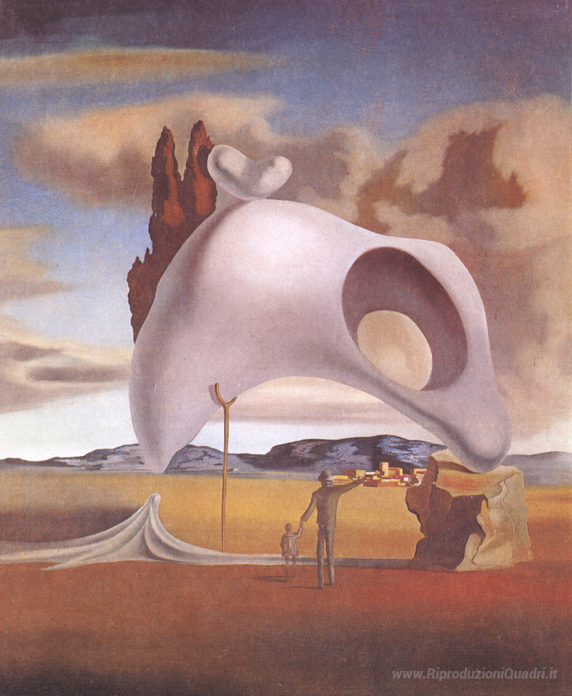 Ti offriamo una riproduzione artigianale su tela dell'opera famosa 'Vestigia ataviche dopo la pioggia' di Salvador Dali, dal Museo delle Riproduzioni.