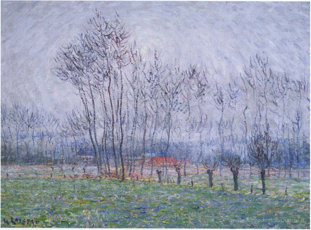 Ti offriamo una riproduzione artigianale su tela dell'opera famosa 'Vicino a Saint Cyr' di Gustave Loiseau, dal Museo delle Riproduzioni.