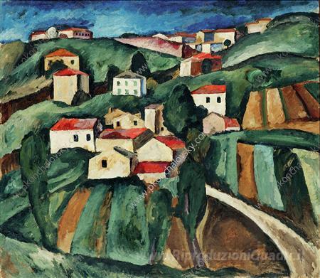 Ti offriamo una riproduzione artigianale su tela dell'opera famosa 'Vicino a Siena' di Pyotr Konchalovsky, dal Museo delle Riproduzioni.