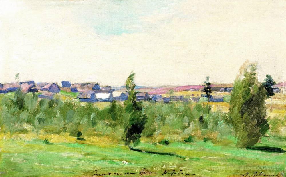 Ti offriamo una riproduzione artigianale su tela dell'opera famosa 'Villaggio' di Isaac Levitan, dal Museo delle Riproduzioni.