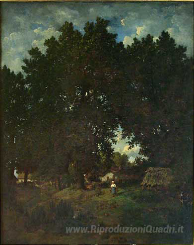 Ti offriamo una riproduzione artigianale su tela dell'opera famosa 'Villaggio sotto gli alberi' di Theodore Rousseau, dal Museo delle Riproduzioni.