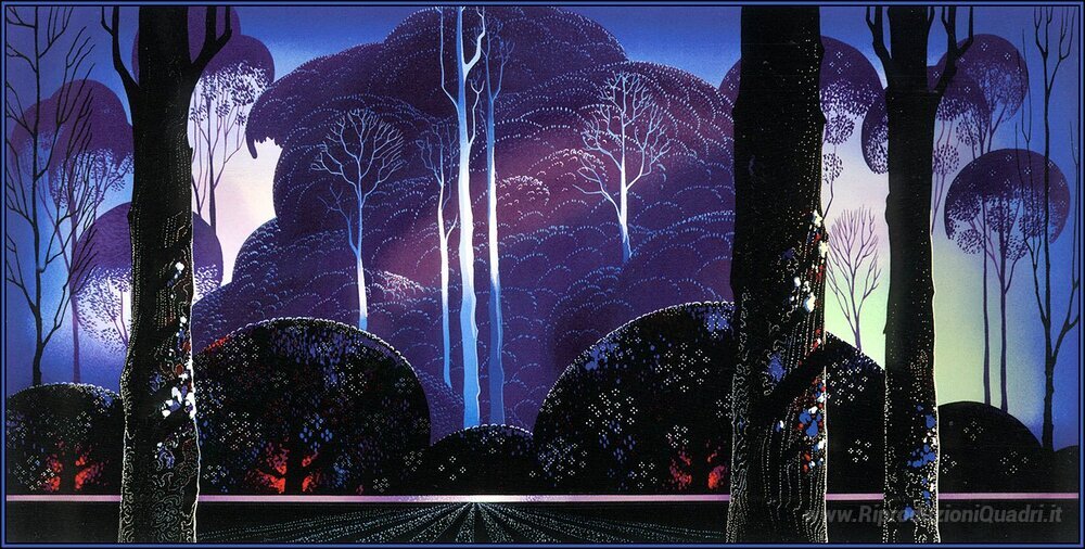 Scopri l'incanto del dipinto Viola Alba dell'artista Eyvind Earle, un'opera che racchiude in sé un perfetto equilibrio tra natura e astrazione. Earle, conosciuto per il suo stile inconfondibile e le sue vibranti palette di colori, trasmette una visione poetica del mondo attraverso una tecnica che unisce l'uso sapiente delle ombre e delle luci a dettagli raffinati. Questo dipinto evocativo offre un'immersione in un paesaggio da sogno, dove ogni pennellata racconta una storia.