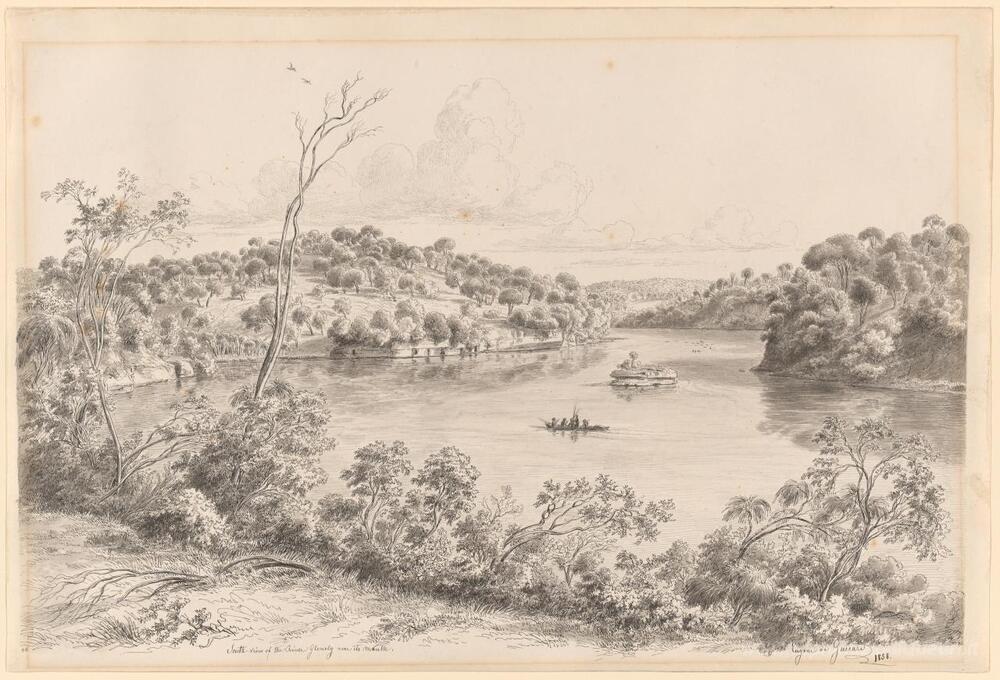 Scoprite l'incanto dei dipinti a olio con la straordinaria opera Vista a sud del fiume vicino alla sua bocca Glenelg dell'artista Eugene von Guerard. Con una carriera artistica che si estende per oltre quarant'anni, von Guerard è noto per la sua abilità nell'illuminare il paesaggio australiano e accogliere la bellezza naturale. I suoi dipinti, caratterizzati da una vivida attenzione ai dettagli e da una paletta di colori ricca e vibrante, sonto in grado di trasportare lo spettatore in un viaggio visivo senza eguali.