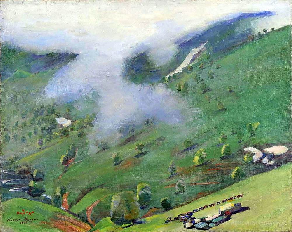 Benvenuti nella nostra collezione di dipinti a olio, dove l’arte italiana si fonde con la maestria dei più grandi artisti. Oggi vi presentiamo Martiros Saryan, un autentico maestro della luce e del colore, le cui opere catturano l’essenza dei paesaggi con una vivacità senza pari. La sua opera Vista della Gola del Pushkin Passo è un esempio sublime della sua abilità nel riprodurre la bellezza della natura attraverso pennellate delicate e una palette vibrante.