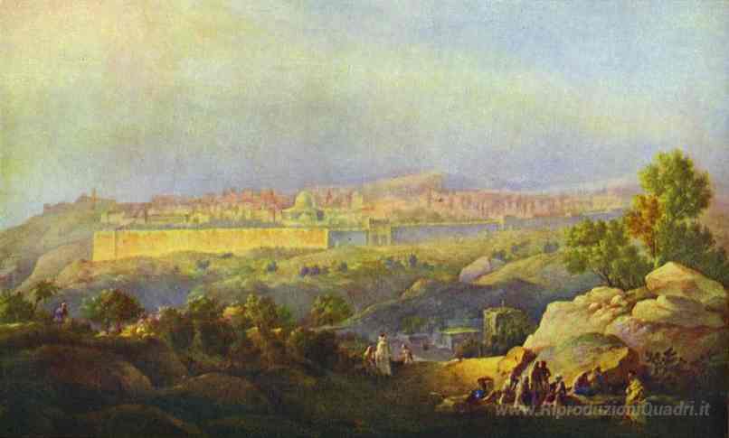 Ti offriamo una riproduzione artigianale su tela dell'opera famosa 'Vista di Gerusalemme' di Maxim Vorobiev, dal Museo delle Riproduzioni.