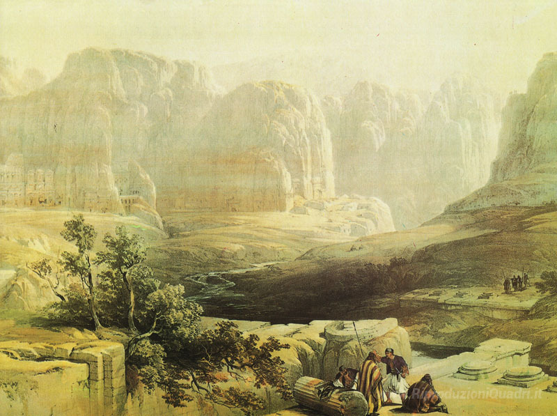 Ti offriamo una riproduzione artigianale su tela dell'opera famosa 'Vista di Petra, Sud' di David Roberts, dal Museo delle Riproduzioni.