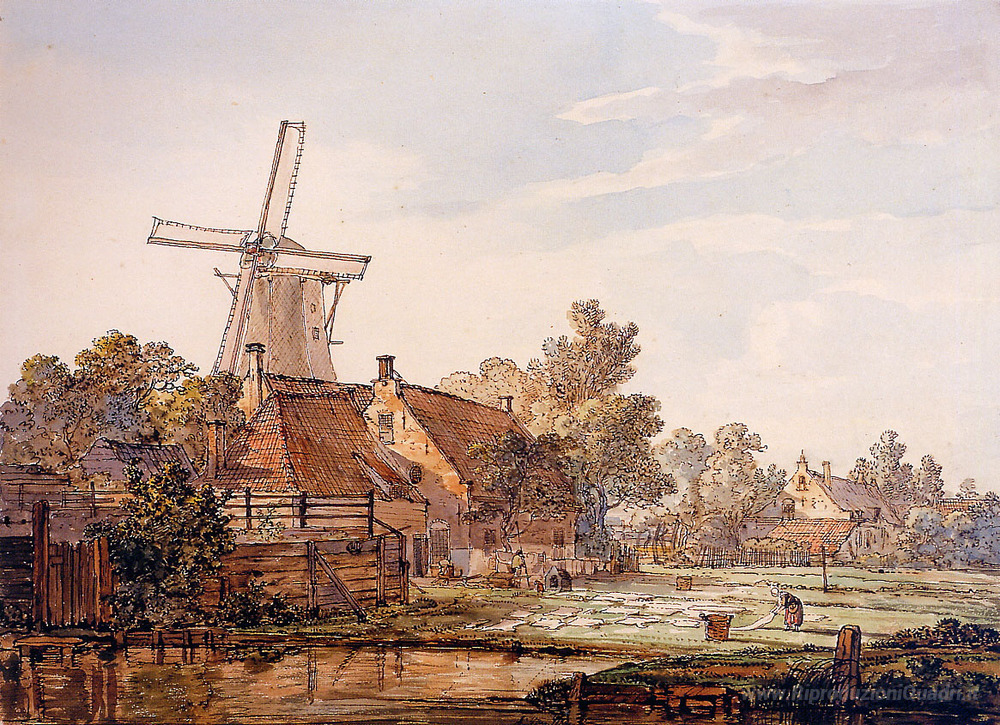Ti offriamo una riproduzione artigianale su tela dell'opera famosa 'Vista sul Bleechingground in Vriesepoort' di Jacob van Strij, dal Museo delle Riproduzioni.
