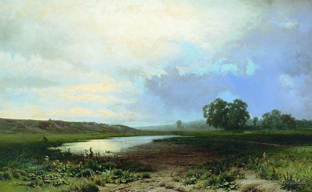 Ti offriamo una riproduzione artigianale su tela dell'opera famosa 'Wet Prato' di Fyodor Vasilyev, dal Museo delle Riproduzioni.