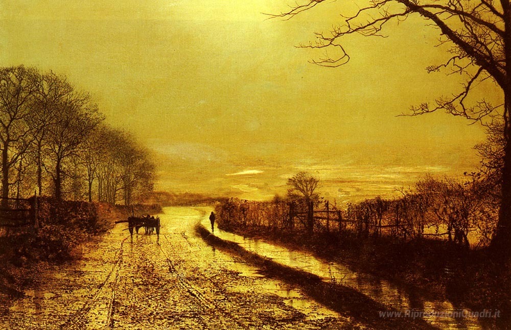 Ti offriamo una riproduzione artigianale su tela dell'opera famosa 'Wharfedale' di John Atkinson Grimshaw, dal Museo delle Riproduzioni.