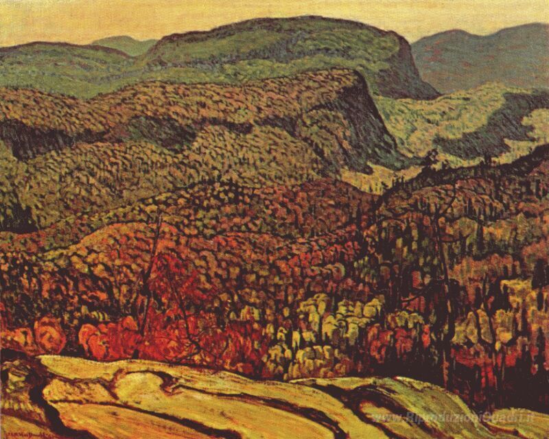Ti offriamo una riproduzione artigianale su tela dell'opera famosa 'Wilderness Foresta' di J. E. H. MacDonald, dal Museo delle Riproduzioni.