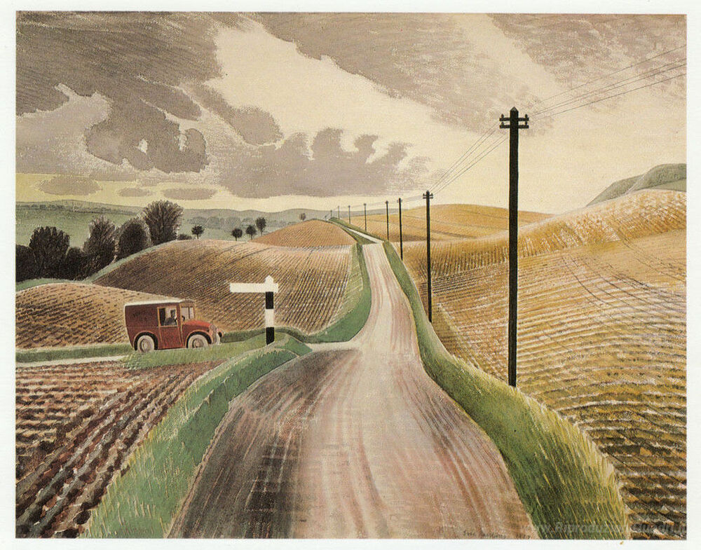 Ti offriamo una riproduzione artigianale su tela dell'opera famosa 'Wiltshire Paesaggio' di Eric Ravilious, dal Museo delle Riproduzioni.