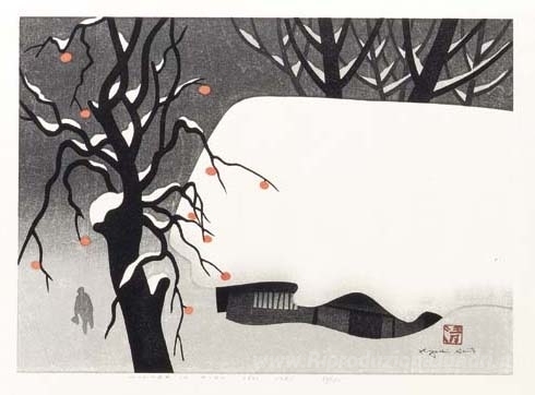 Ti offriamo una riproduzione artigianale su tela dell'opera famosa 'Winter in Aizu (50)' di Kiyoshi Saito, dal Museo delle Riproduzioni.