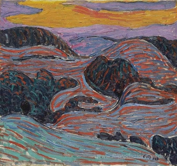 Ti offriamo una riproduzione artigianale su tela dell'opera famosa 'Winterlandschaft' di Cuno Amiet, dal Museo delle Riproduzioni.