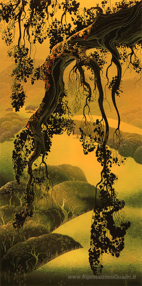 Ti offriamo una riproduzione artigianale su tela dell'opera famosa 'Yorktown Branch' di Eyvind Earle, dal Museo delle Riproduzioni.