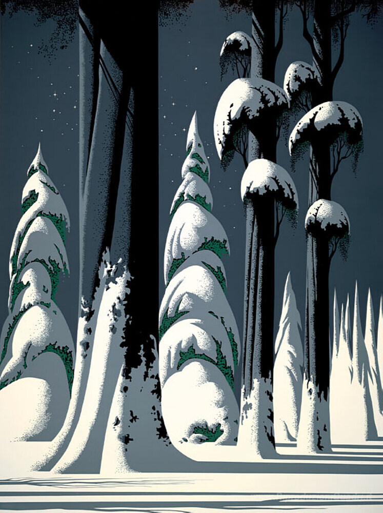 Ti offriamo una riproduzione artigianale su tela dell'opera famosa 'Yosemite' di Eyvind Earle, dal Museo delle Riproduzioni.