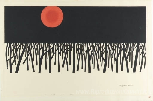 Ti offriamo una riproduzione artigianale su tela dell'opera famosa 'Yuki, yuhi (neve, tramonto)' di Kiyoshi Saito, dal Museo delle Riproduzioni.