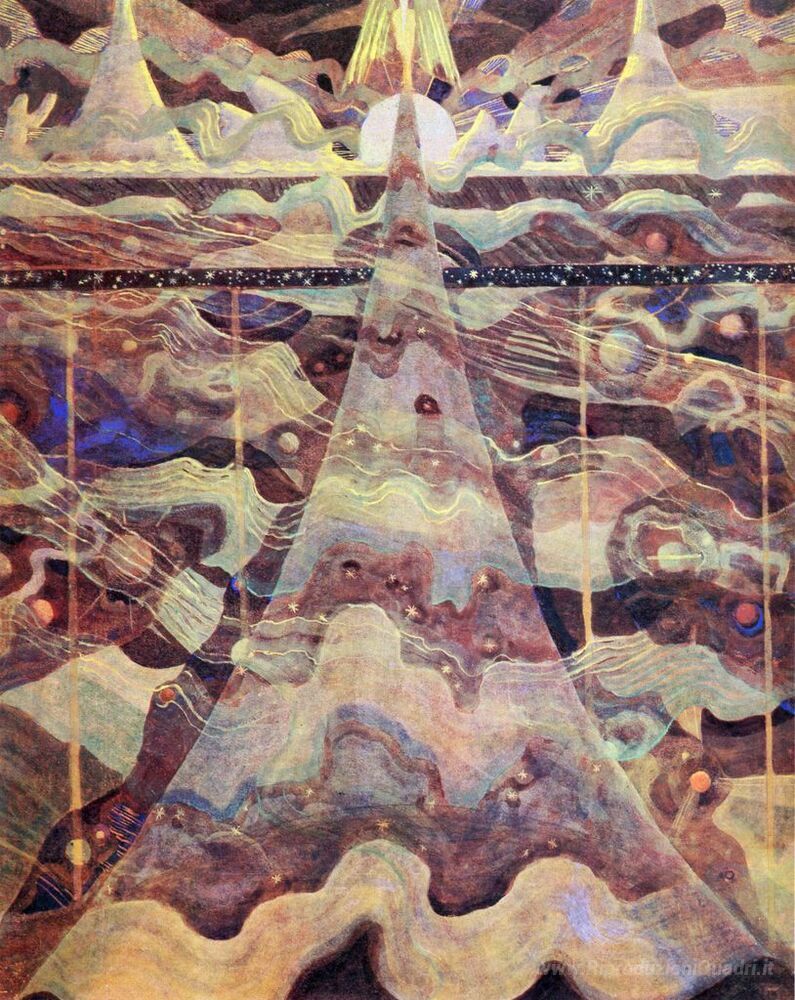Ti offriamo una riproduzione artigianale su tela dell'opera famosa 'Allegro (sonata delle Stelle)' di Mikalojus Ciurlionis, dal Museo delle Riproduzioni.