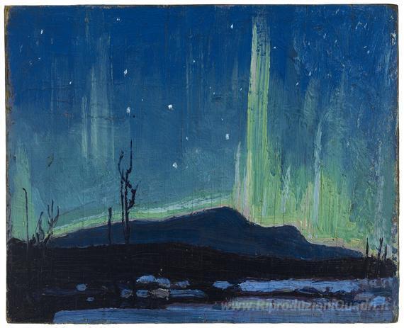 Ti offriamo una riproduzione artigianale su tela dell'opera famosa 'Aurora boreale' di Tom Thomson, dal Museo delle Riproduzioni.