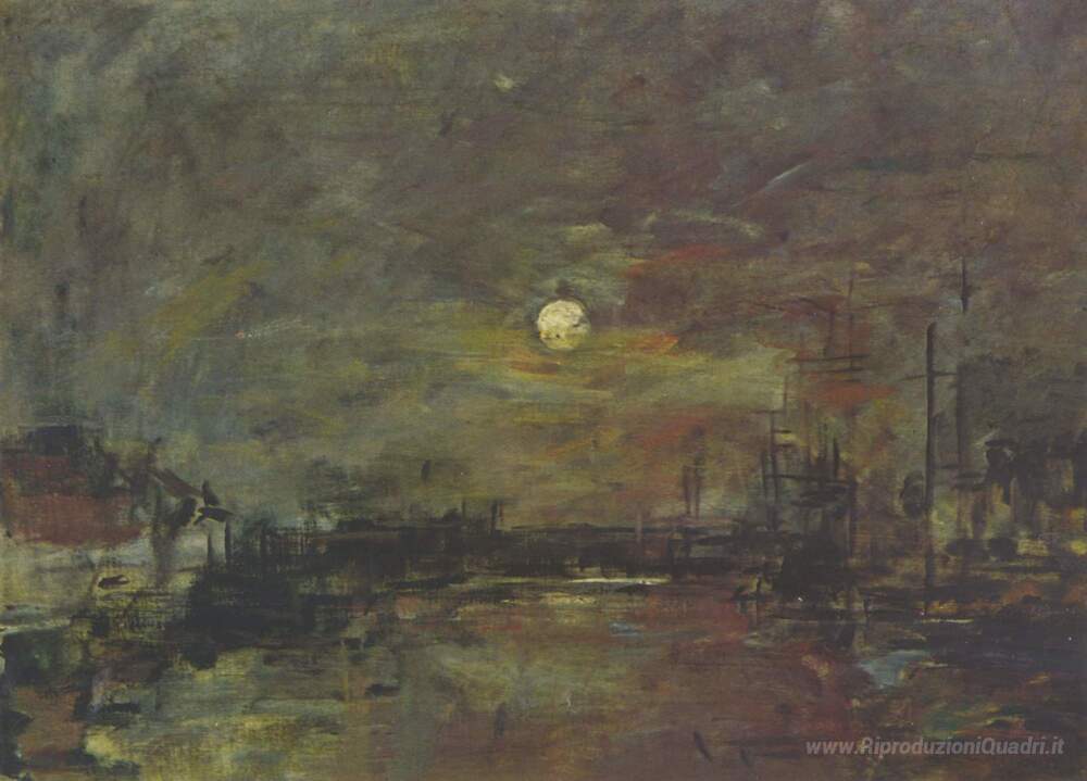Ti offriamo una riproduzione artigianale su tela dell'opera famosa 'Crepuscolo sul porto di Le Havre' di Eugene Boudin, dal Museo delle Riproduzioni.