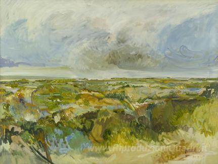 Ti offriamo una riproduzione artigianale su tela dell'opera famosa 'La scena aperta' di Jane Wilson, dal Museo delle Riproduzioni.