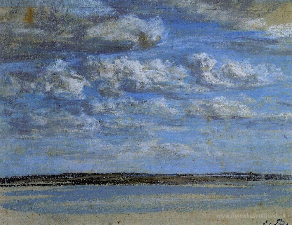 Ti offriamo una riproduzione artigianale su tela dell'opera famosa 'Nuvole Bianche, Blue Sky' di Eugene Boudin, dal Museo delle Riproduzioni.