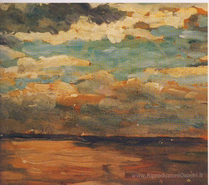 Ti offriamo una riproduzione artigianale su tela dell'opera famosa 'Tramonto sul mare' di Winston Churchill, dal Museo delle Riproduzioni.