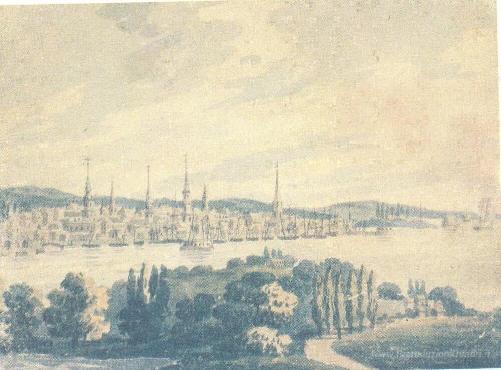 Ti offriamo una riproduzione artigianale su tela dell'opera famosa 'Veduta di New York' di Pavel Svinyin, dal Museo delle Riproduzioni.