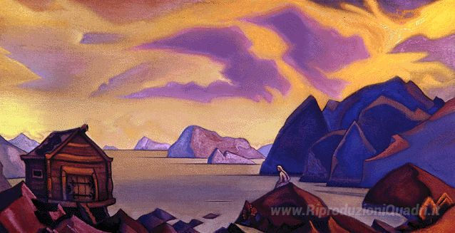 Ti offriamo una riproduzione artigianale su tela dell'opera famosa 'Attesa' di Nicholas Roerich, dal Museo delle Riproduzioni.