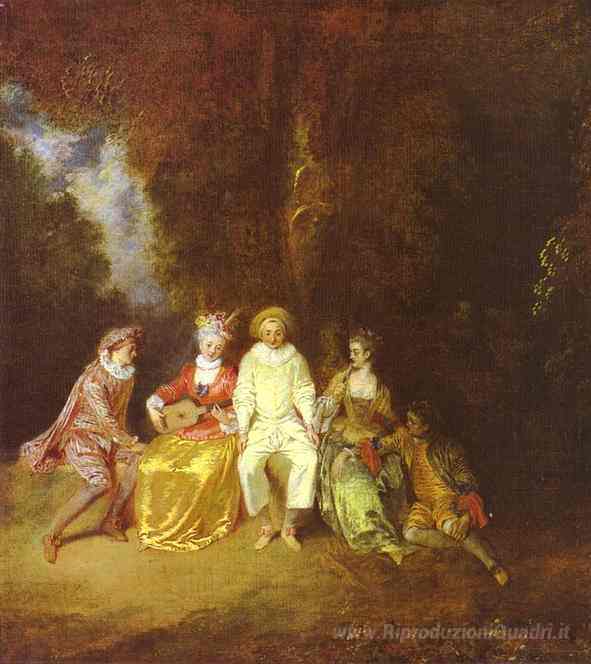Ti offriamo una riproduzione artigianale su tela dell'opera famosa 'Felice Pierrot' di Antoine Watteau, dal Museo delle Riproduzioni.