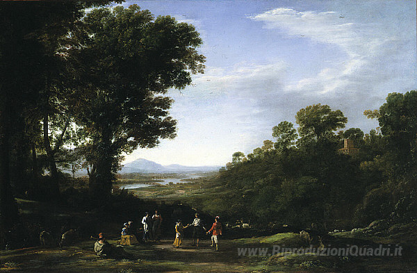 Ti offriamo una riproduzione artigianale su tela dell'opera famosa 'Gli abitanti del villaggio di Dancing' di Claude Lorrain, dal Museo delle Riproduzioni.