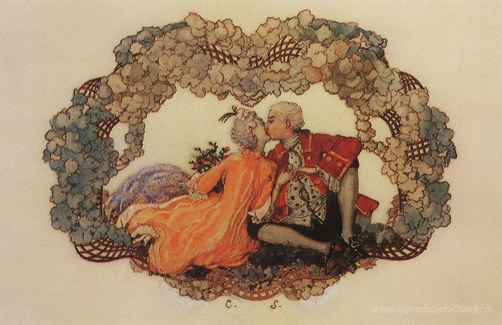 Ti offriamo una riproduzione artigianale su tela dell'opera famosa 'Il bacio' di Konstantin Somov, dal Museo delle Riproduzioni.