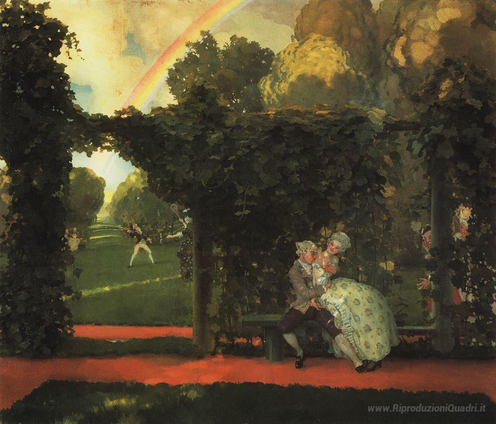 Ti offriamo una riproduzione artigianale su tela dell'opera famosa 'Il Rise bacio' di Konstantin Somov, dal Museo delle Riproduzioni.