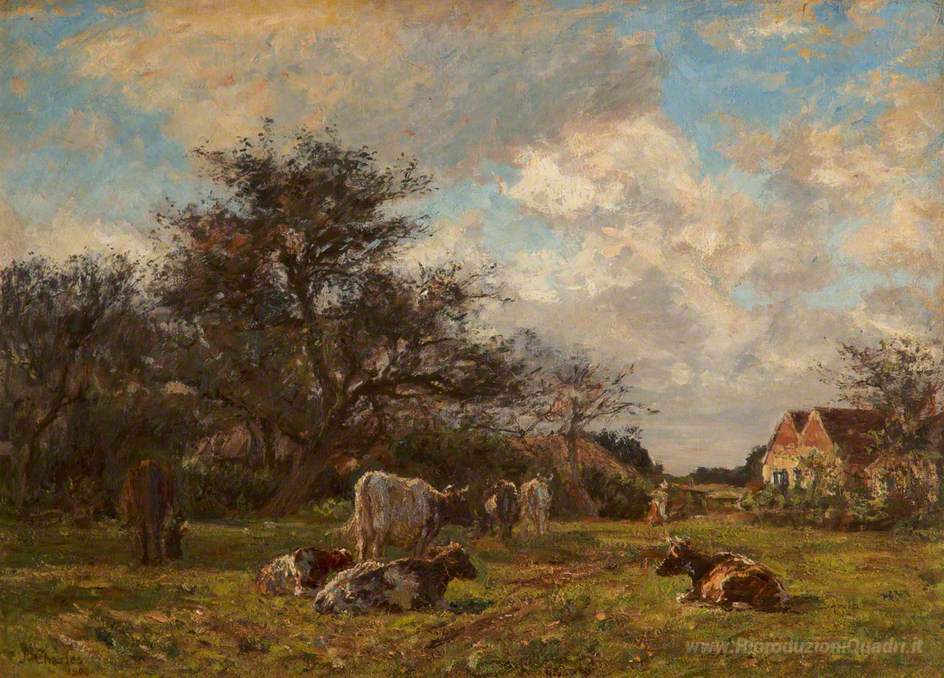 La maestria di James Charles si esprime attraverso l'uso sapiente dei colori e delle tecniche pittoriche, che conferiscono all'opera una profonda luminosità. Il suo stile, caratterizzato da pennellate fluide e dettagli accurati, riesce a evocare una sensazione di calma e tranquillità, rendendo In una fattoria del Sussex un'aggiunta perfetta per qualsiasi ambiente. Questo dipinto non solo abbellirà il vostro spazio, ma trasformerà l'atmosfera, invitando alla contemplazione e alla serenità.