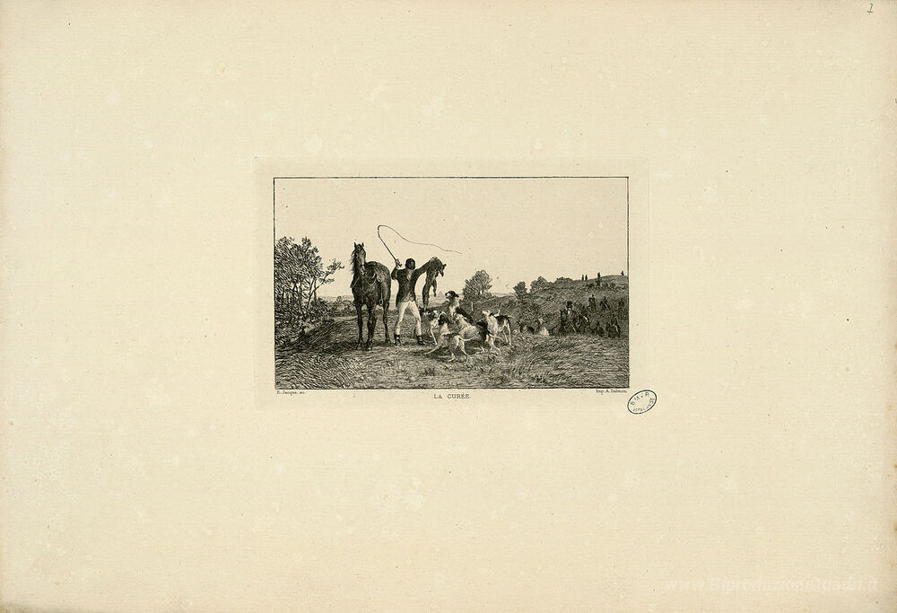 Ti offriamo una riproduzione artigianale su tela dell'opera famosa 'La curée' di Charles Jacque, dal Museo delle Riproduzioni.
