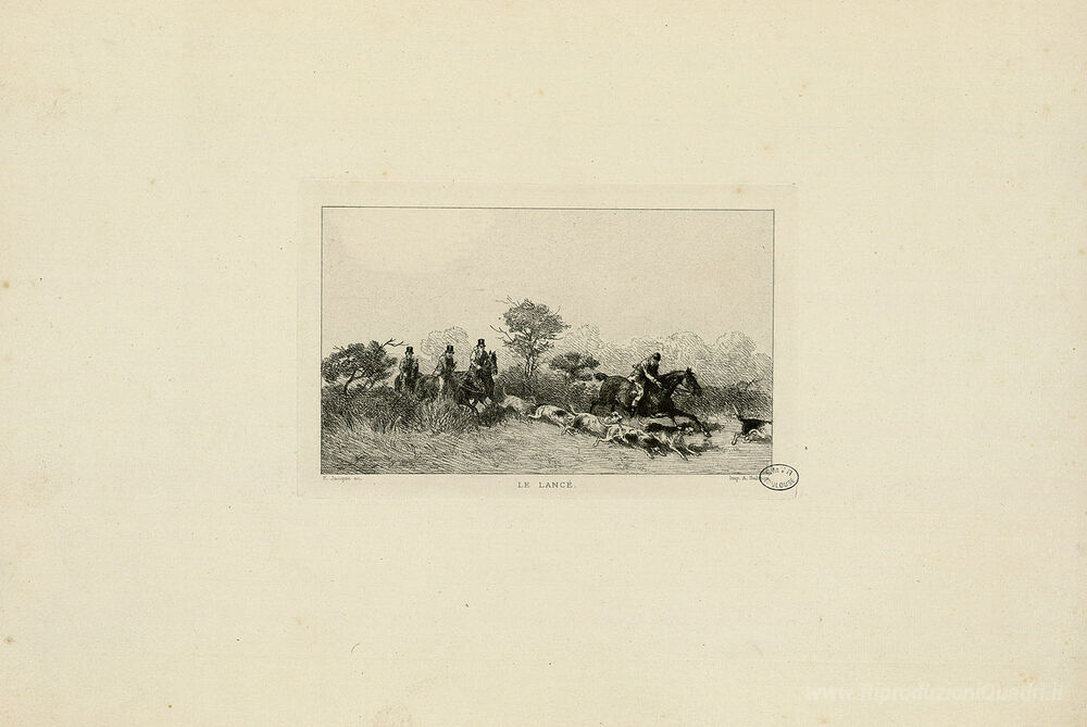 Ti offriamo una riproduzione artigianale su tela dell'opera famosa 'Le Lance' di Charles Jacque, dal Museo delle Riproduzioni.