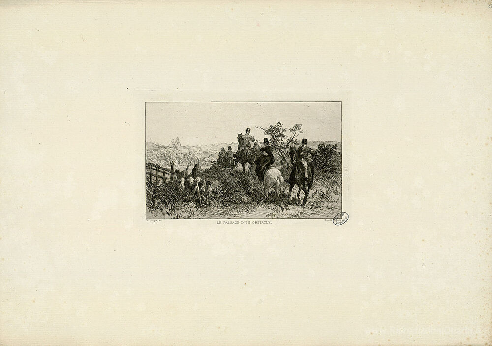 Ti offriamo una riproduzione artigianale su tela dell'opera famosa 'Le passaggio d'un ostacolo' di Charles Jacque, dal Museo delle Riproduzioni.