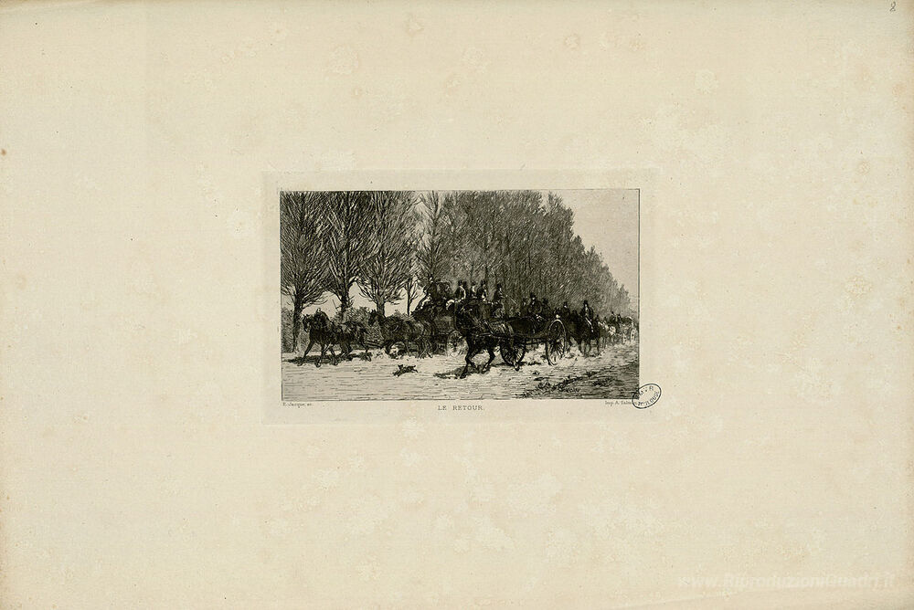 Ti offriamo una riproduzione artigianale su tela dell'opera famosa 'Le Retour' di Charles Jacque, dal Museo delle Riproduzioni.