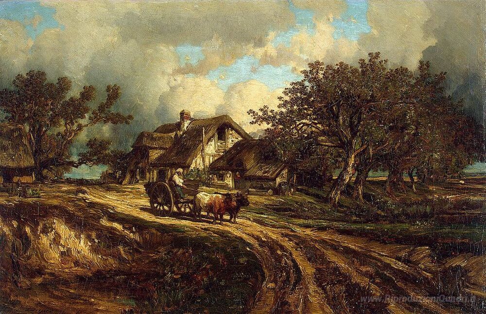 Ti offriamo una riproduzione artigianale su tela dell'opera famosa 'Villaggio Paesaggio' di Jules Dupre, dal Museo delle Riproduzioni.