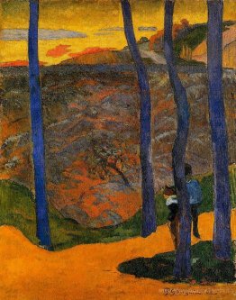 Paesaggio con maiali neri e un tahitiano accovacciato